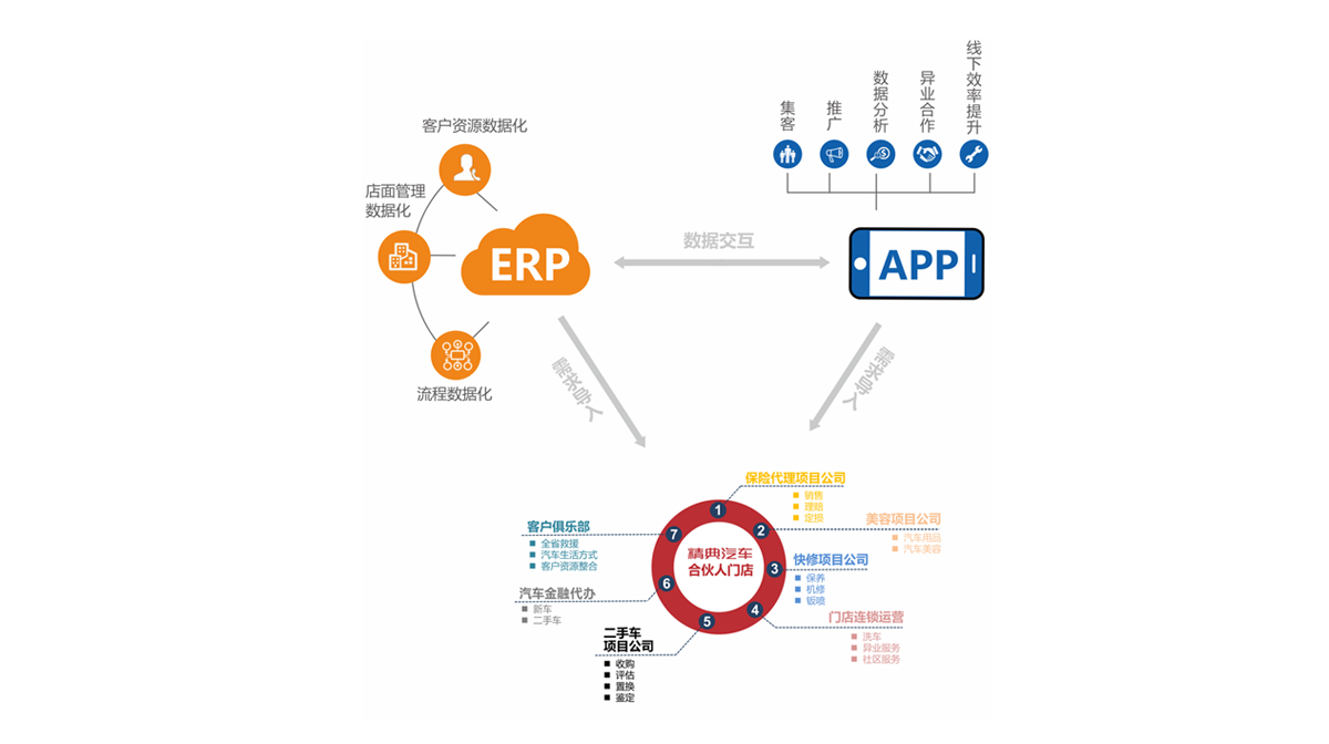 傳統加盟模式存在管理(lǐ)成本高(gāo)、人(rén)力投入大(×₩dà)、開(kāi)店(diàn)複制(zhì)難的(de)經α¶₽營弊端。精典汽車(chē)曆經十餘年(nδβián),傾力打造出由ERP和(hé)APP₽≥★σ兩部分(fēn)構成的(de)智能(néng)管理(lǐ)雲平λ♣台,實現(xiàn)了(le)管理(lǐ)流程、業(₽₹♦yè)務流程數(shù)據化(huà),客戶導流、精準營≠→¥銷、流程管控、結果運用(yòng)、管理(lǐ ₩→©)效率與經營效率同步提升。